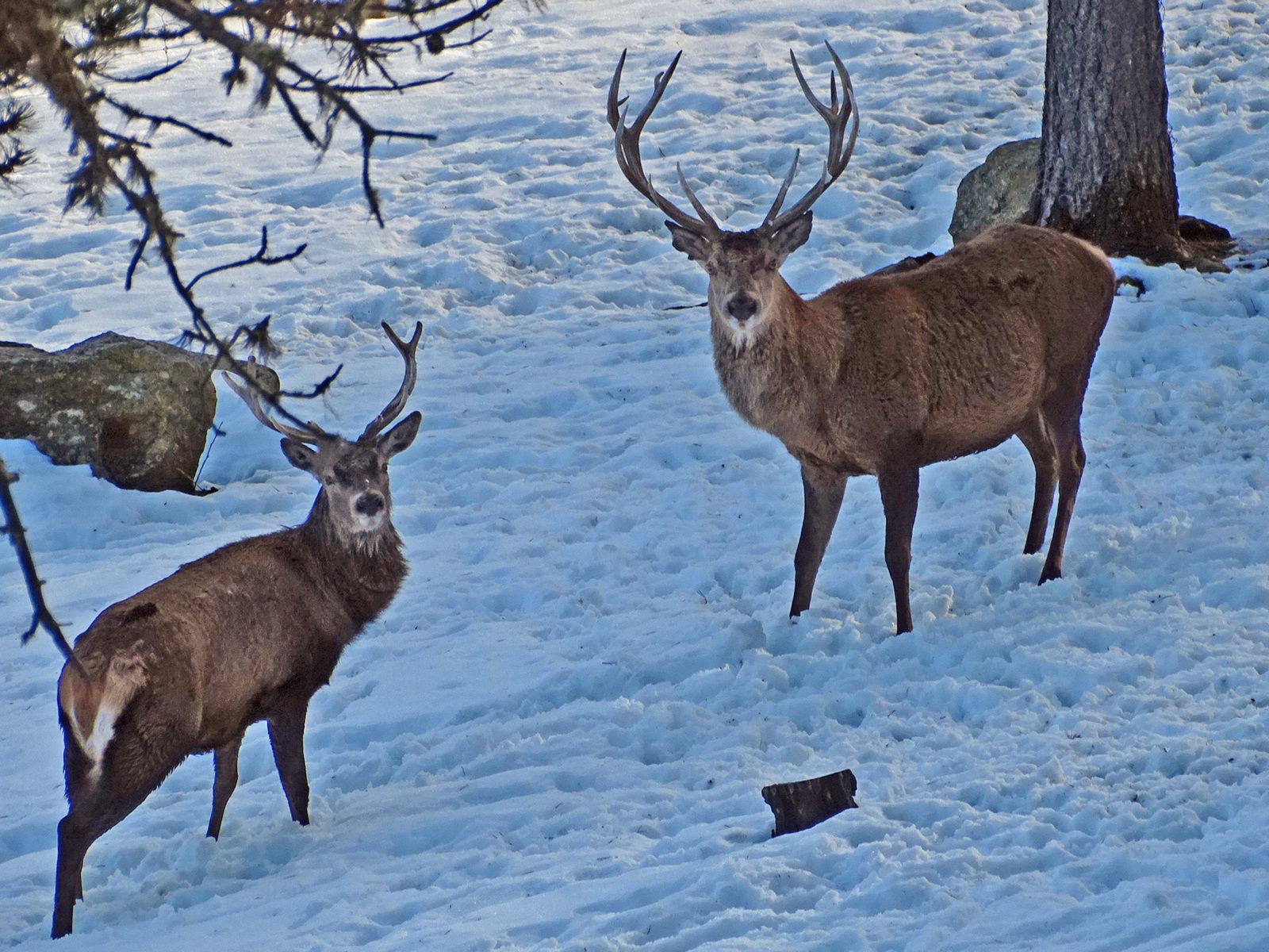 Si on ne peut pas considérer « Le Parc animalier des Angles » comme une véritable randonnée, les 3,5km, qui sont à accomplir pour en faire une grande visite ; en font tout de même une belle et longue promenade. Ajoutons-y quelques tous petits sentiers de traverse et une marche très souvent dans la neige, comme nous en avons eu en ce 25 décembre 2024, et la randonnée pédestre n’est finalement pas très loin. Notre gendre et notre fille ayant décidé de passer les fêtes de Noël aux Angles et nous ayant invités, en ce 25 décembre nous voilà Dany et moi confrontés au besoin de s’occuper. La veille, le petit marché de Noël a été très agréable à cheminer, le feu d’artifices génial, le Réveillon, agrémenté d’une excellente raclette, super sur tous les plans, les parties de lotos et de jeux de société très sympathiques mais que faire après et aux Angles en plein hiver quand le ski n’est pas notre tasse de thé ? Là, en ce jour de Noël, le parc animalier est tombé à point nommé. Même si je dois avouer que je préfère savoir les animaux sauvages en totale liberté, ici je me dis que si les 34 euros que je vais laisser pour entrer peuvent permettre de rendre ces animaux un peu plus heureux alors c’est bien d’aller les voir. Voilà dans quel état d’esprit je suis quand je propose cette visite à Dany. Elle est partante car je sais que tout comme moi aller marcher un peu n’est pas une contrainte. Marcher, voir des animaux sauvages, nous sommes d’accord. Il est 14h30 passé quand nous entrons dans le parc. Si les cerfs et les biches sont les premiers visibles, je suis bien étonné de voir 2 jolis mâles en train de s’affronter bois contre bois. En les voyant, je me dis que malgré l’enfermement, ils n’ont rien perdu de leurs instincts naturels. Sont-ils bien ici pour autant ? Je ne sais pas mais en apprenant que les marmottes et les ours ne seront pas visibles car en hibernation, cela confirme cette possibilité. Avec les renards blottis dans leur terrier, voilà les 3 espèces que nous ne verrons pas, toutes les autres étant bien visibles : sangliers, mouflons, bouquetins, isards, loups, chevreuils, bisons, blaireaux, lynx, rennes et daims. Outre, les instincts sauvages observés, nous avons pu constater que tous ces animaux étaient bien nourris et que leurs lieux de vie étaient fort bien entretenus. Cela m’a conforté dans l’idée que nous avions bien fait de venir même si je minimise cette petite musique que j’attends souvent et qui consiste à affirmer qu’un parc zoologique sert surtout à la conservation d’espèces menacées. Oui, c’est sans doute vrai dans certains cas mais pas toujours pour d’autres. Les dizaines de cervidés enfermés ici seraient sans doute mieux en totale liberté. Maintenant qu’un parc puisse éviter la pression humaine et notamment celle consécutive à leur chasse, là je partage cette protection tout en me disant que d’autres solutions plus adaptées sont certainement préférables et possibles. Enfin, si un parc animalier comme celui des Angles peut aider à mieux faire aimer les animaux sauvages et notamment auprès des enfants, je ne suis pas contre. Outre, les animaux, il y a aussi un sentier botanique avec divers pupitres évoquant la jolie petite flore de cette magnifique forêt de pins à crochets. Un 25 décembre n’était pas idéal pour des observations, mais j’ai pris plaisir à lire les pupitres même si pour visualiser les fleurs, il m’a fallu faire appel à quelques souvenirs d’autres balades printanières. Finalement, après 2 heures de marche et de découvertes, le constat sera surtout positif et si je devais émettre un avis, il le serait aussi. Non, nous n’avons pas regretter nos 2 billets d’entrée. Allez-y !